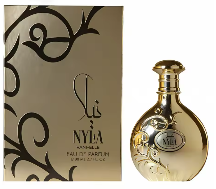 Entdecken Sie Arabiyat Nyla Vani-Elle Prestige (80 ml): Ein luxuriöser Unisex-Gourmand-Duft. Jasmin, Karamell, Amber und eine cremige Basis aus Tonkabohne & Vanille.