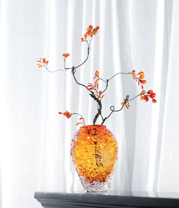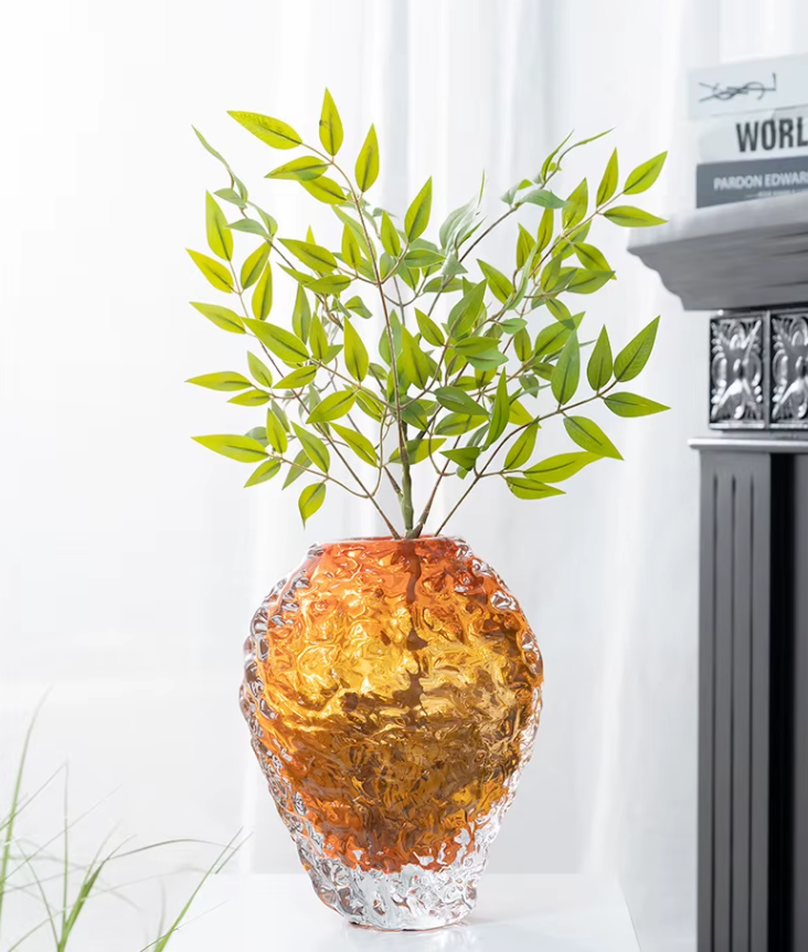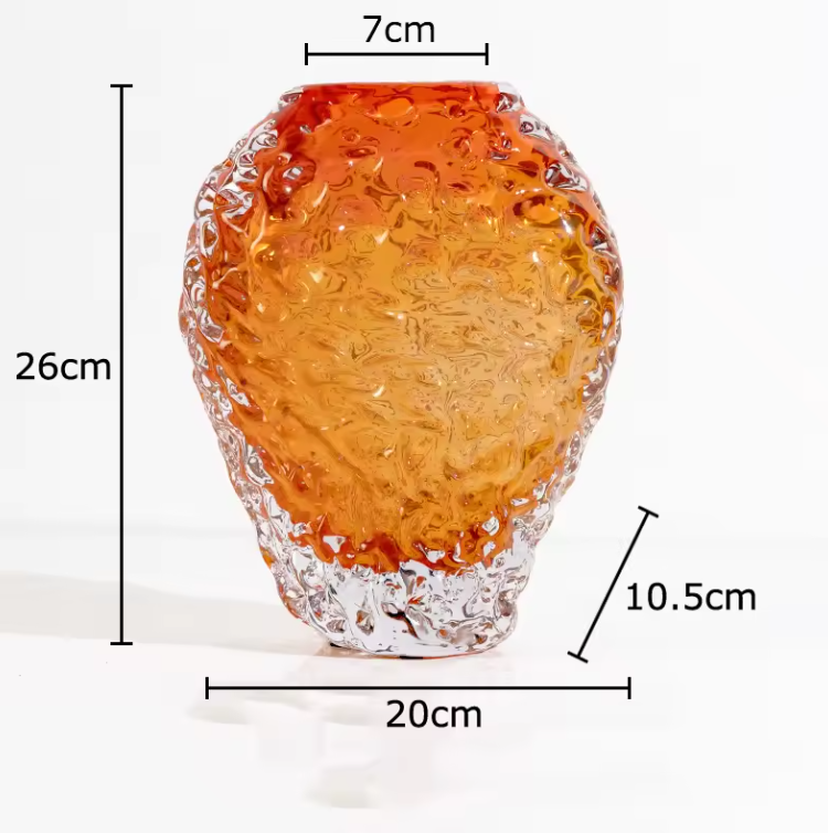 Setzen Sie stilvolle Akzente in Ihrem Zuhause mit dieser dekorativen Vase aus strukturiertem Glas in edler Bernsteinfarbe. Das markante Design mit welliger Oberfläche verleiht jedem Raum einen warmen, modernen Charakter.
