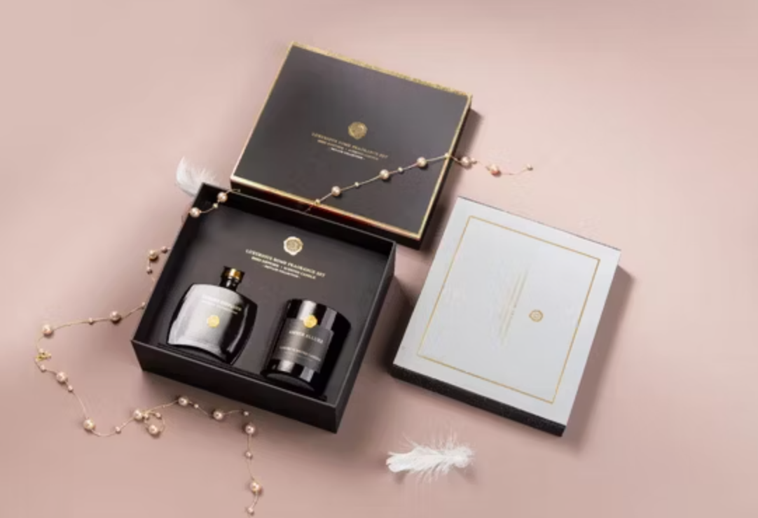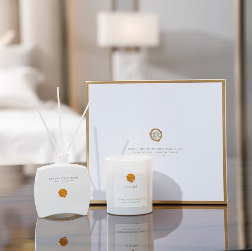 Verpackung: Premium-Geschenkbox („Luxurious Home Fragrance Set“).