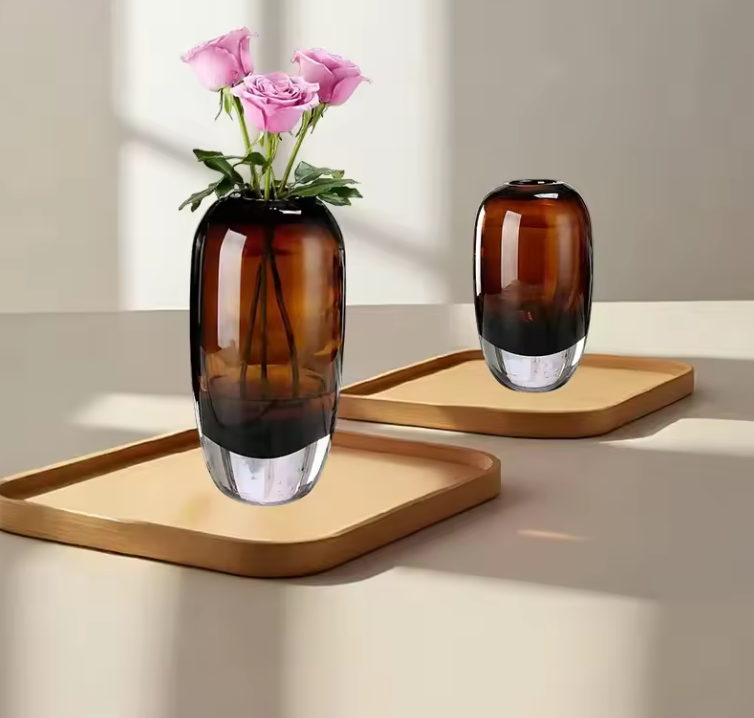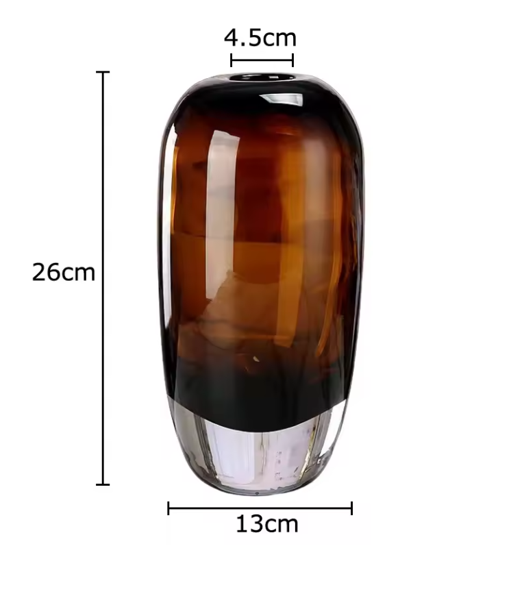 Diese exklusive, hohe Glasvase besticht durch ihr einzigartiges Design. Der Boden der Vase ist aus klarem, transparentem Glas gefertigt, das sich nach oben hin in einen warmen, bernsteinfarbenen Farbton verwandelt. Dieser sanfte Farbverlauf verleiht jedem Raum eine besondere Note und passt hervorragend zu modernen wie auch klassischen Einrichtungsstilen. Die Vase eignet sich perfekt, um Lieblingsblumen stilvoll in Szene zu setzen oder als alleinstehendes Deko-Objekt einen eleganten Akzent zu setzen. Die abgebildeten Blumen dienen lediglich als Dekorationsbeispiel und sind nicht im Lieferumfang enthalten. Mit dieser Vase erhält man ein hochwertiges und zeitloses Kunstobjekt für das Zuhause.