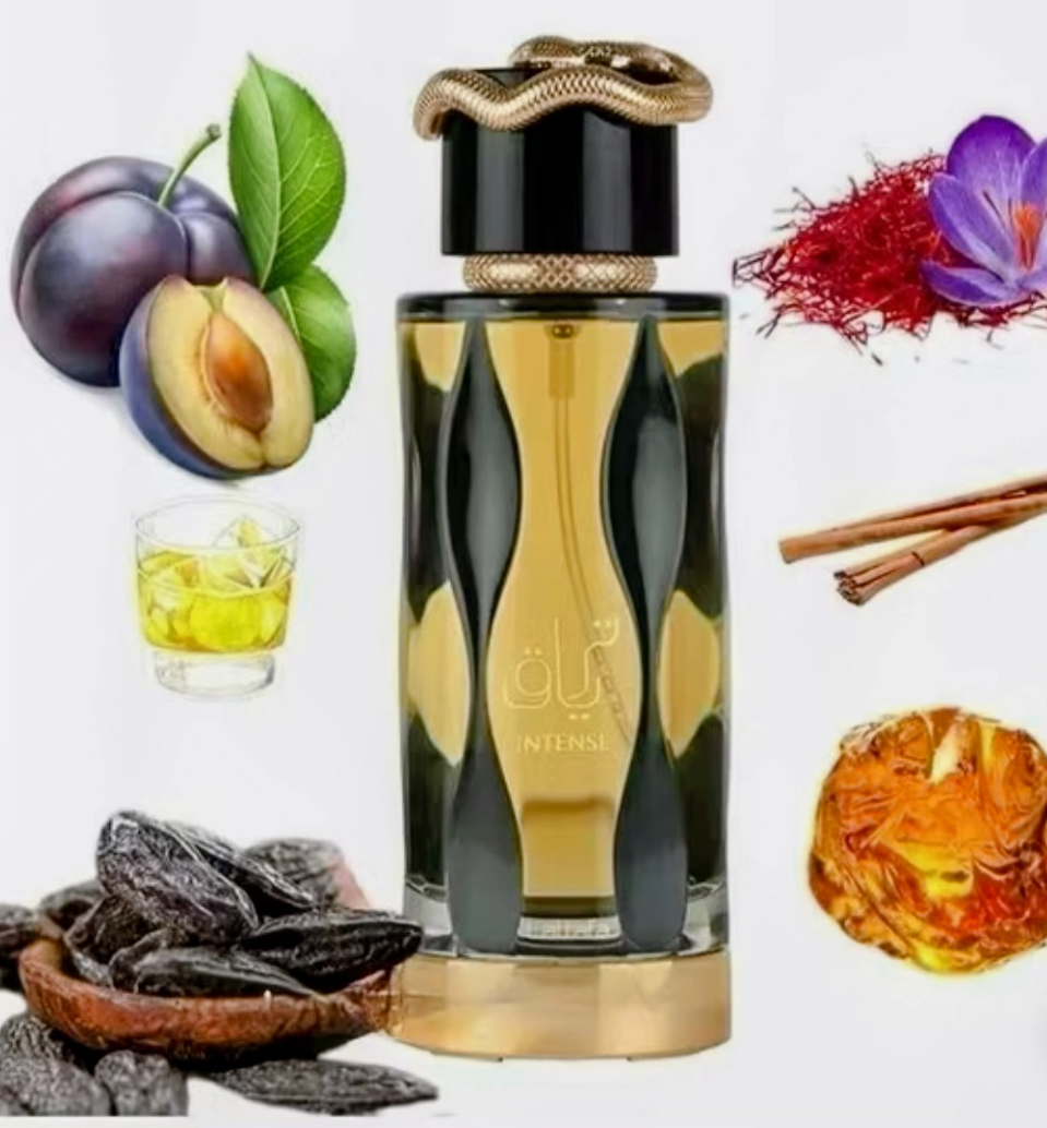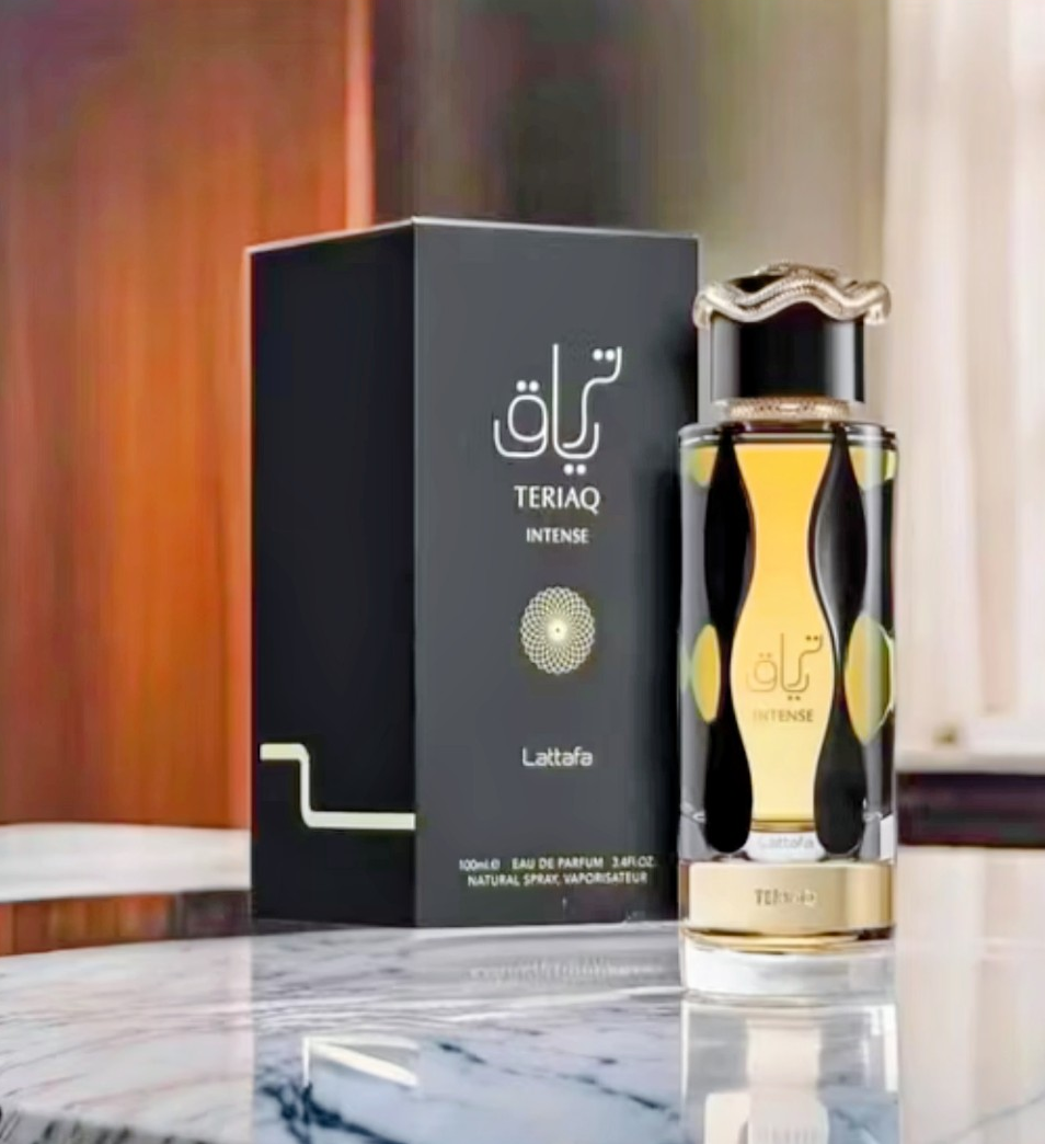 Lattafa Teriaq Intense ist ein orientalischer, würziger Unisex-Duft von Quentin Bisch. Er kombiniert Safran und Bergamotte mit Pflaumenlikör, Zimt, Amber und Tonka.