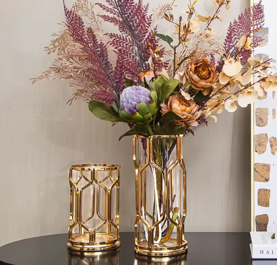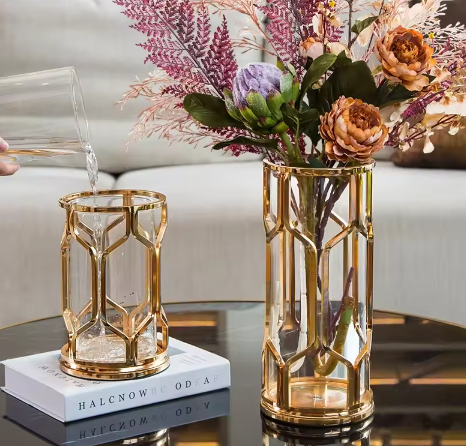 Vasen mit Goldgestell | Moderne Glasvasen | Wohnzimmer Deko