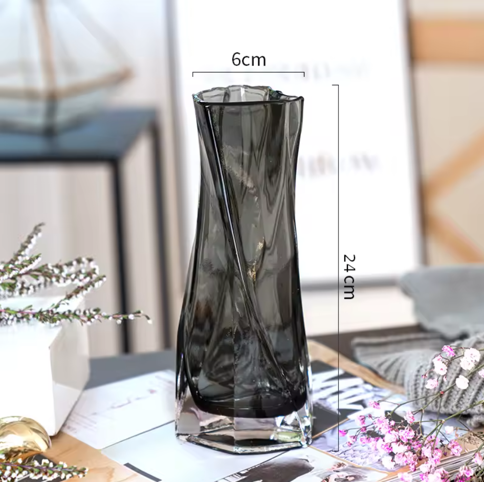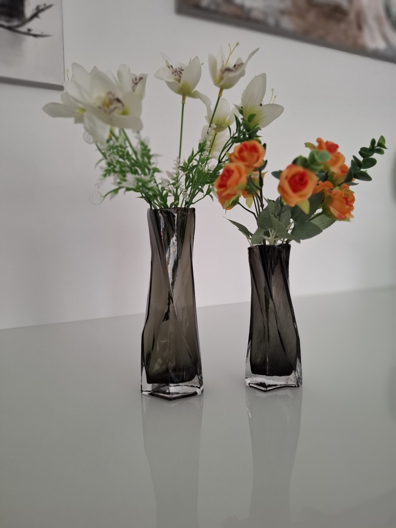 - Elegante Dunkelheit trifft auf modernes Design: gedrehte Glasvase. Die Vase besticht durch ihr verdrehtes Design, das in jedem Raum ein Blickfang ist. Perfekt für frische Blumensträuße oder als stilvolles Dekorationsobjekt.