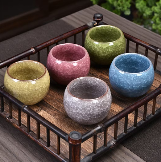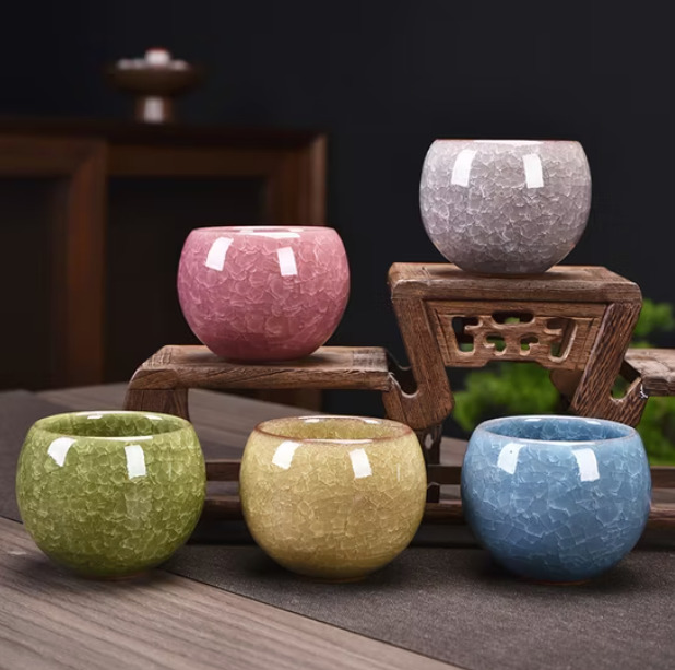 Porzellan Teetassen | Japanische Keramik | Rissige Optik (5 Stück)