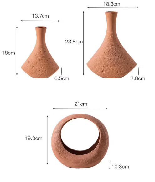 Bringe warme, erdige Akzente in deine Einrichtung mit diesen einzigartigen Terrakotta-Vasen. Ihre organischen Formen und die raue, handgefertigte Textur machen sie zu einem perfekten Highlight für moderne, mediterrane und boho-inspirierte Wohnstile.