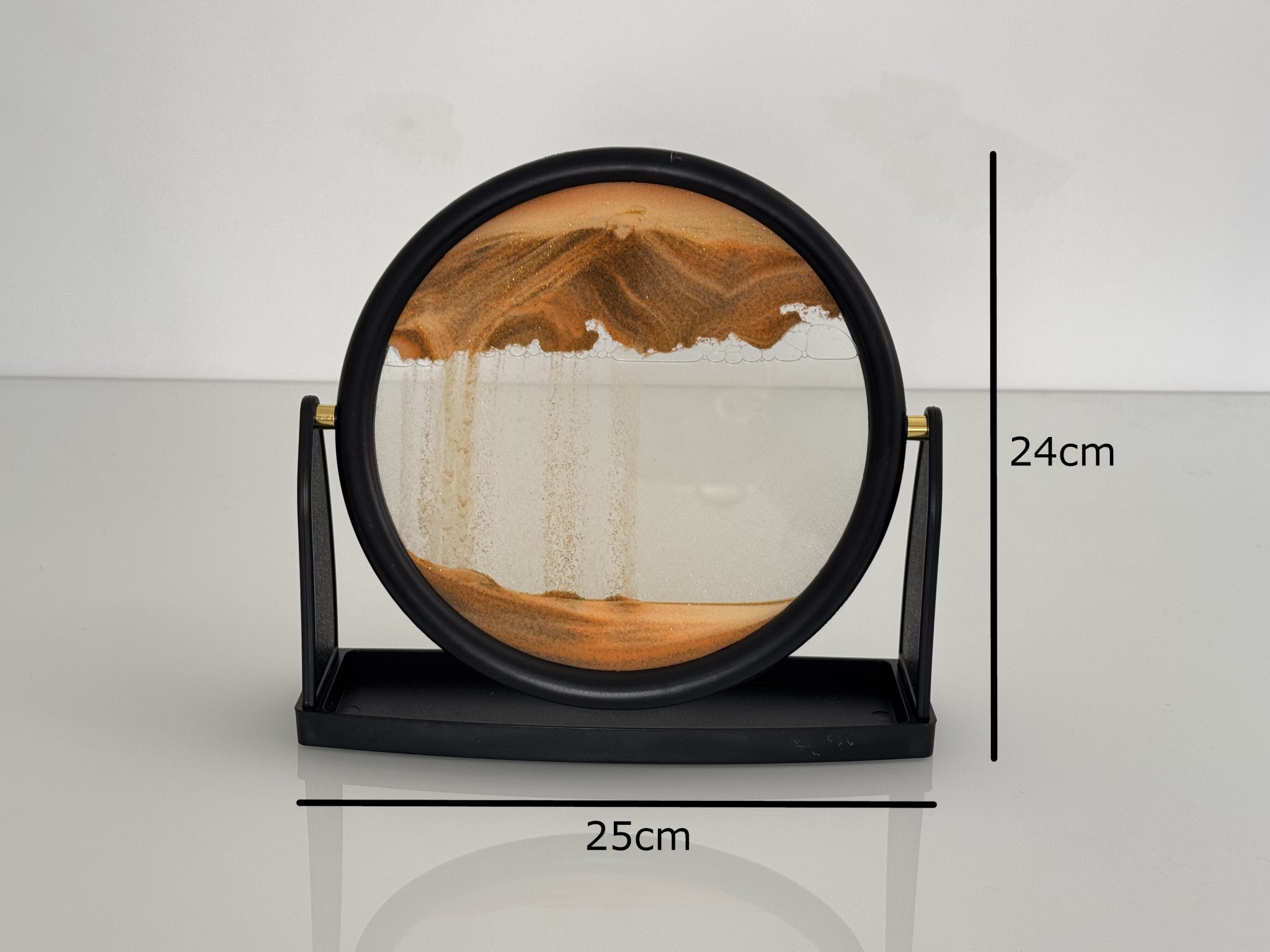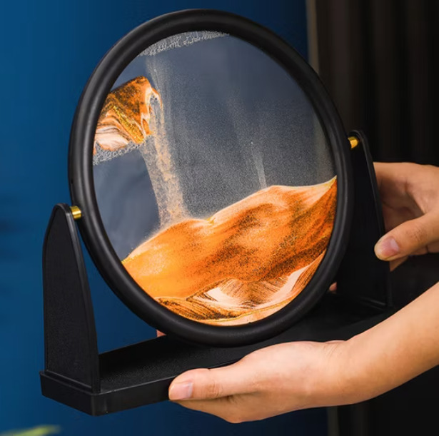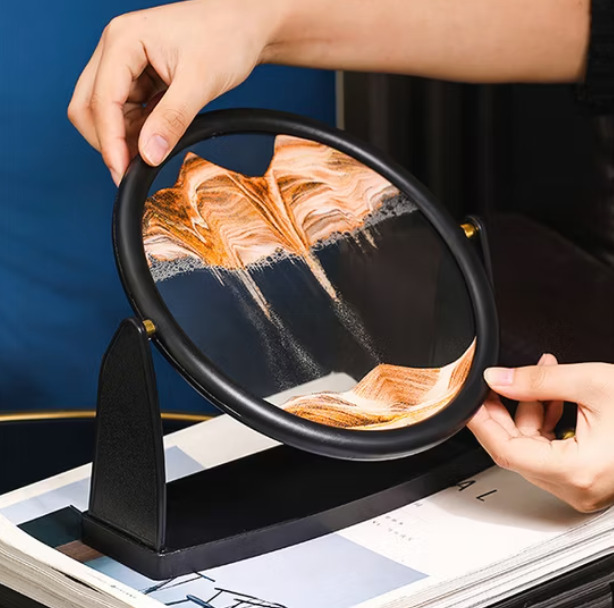 Ob im Homeoffice oder als Blickfang im Wohnzimmer – dieses bewegliche Sandbild bringt Bewegung, Stil und Ruhe in deinen Alltag.
