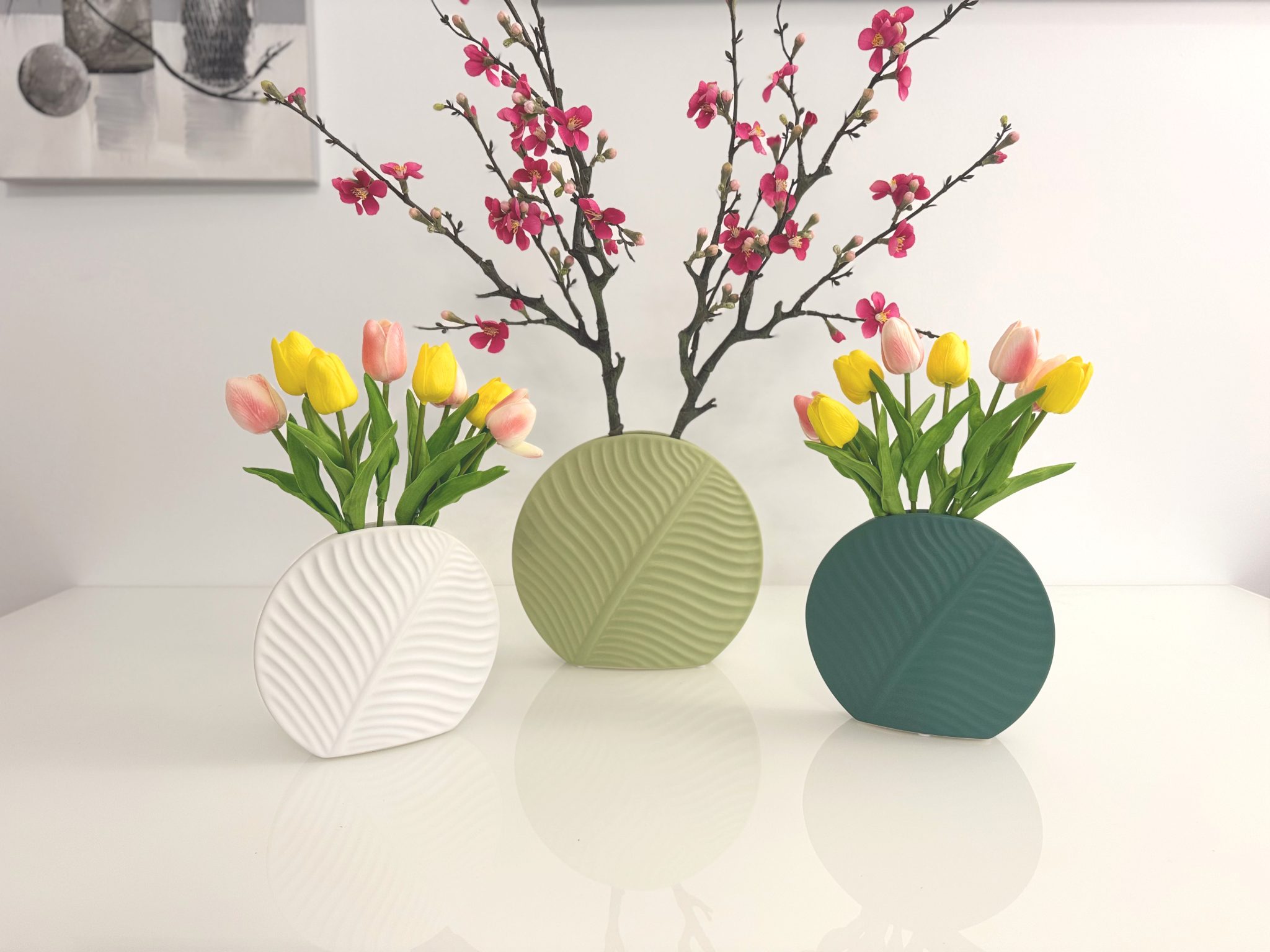 Blatt-Vasen in Pastellfarben | Moderne Keramik-Vasen | Pastell-Deko